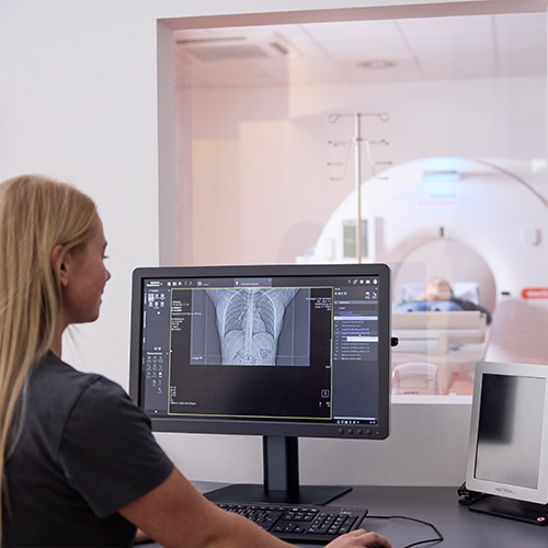 Die Computertomographie wird zur Diagnose von verschiedenen Krankheiten und Verletzungen genutzt. Je nach Bedarf kann der gesamte Körper mittels Ganzkörper-CT untersucht werden oder nur spezifische Körperregionen. Das Verfahren ist geeignet zur Beurteilung von Schädel, Hals, Thorax, Bauch und Becken. Dank moderner Technologie ist eine hochauflösende Darstellung des Herzens und der Gefäße möglich, mit einer geringeren Strahlenbelastung im Vergleich zur konventionellen Katheterangiographie. Weitere Einsatzgebiete umfassen die Dual-Energy-CT, unter anderem zur Metallartefakt-Reduktion, Nierenstein-Differenzierung oder dem Nachweis von Gicht-Tophi. Zusätzlich kann durch die CT-gesteuerte Biopsie minimal-invasiv eine gewebeschonende Probenentnahme im Rahmen der prätherapeutischen Abklärung (z. B. bei bösartigen Erkrankungen) vorgenommen werden.